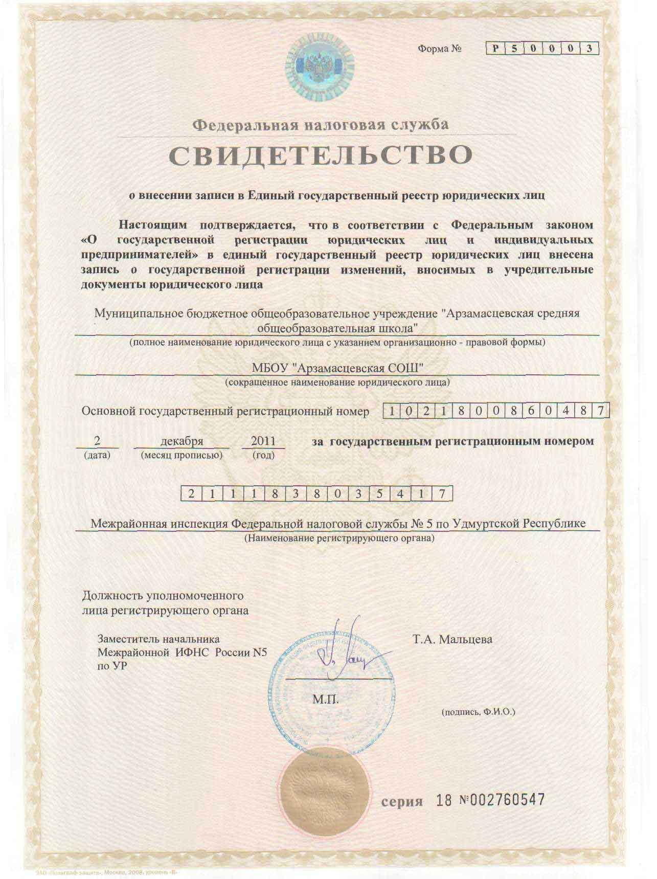 СВИДЕТЕЛЬСТВО О ВНЕСЕНИИ ЗАПИСИ В ЕДИНЫЙ ГОСУДАРСТВЕННЫЙ РЕЕСТР ЮРИДИЧЕСКИХ ЛИЦ посмотреть